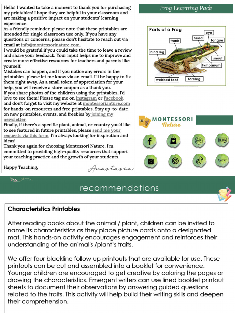 I wanted to take a moment to thank you for purchasing Frog Learning Pack