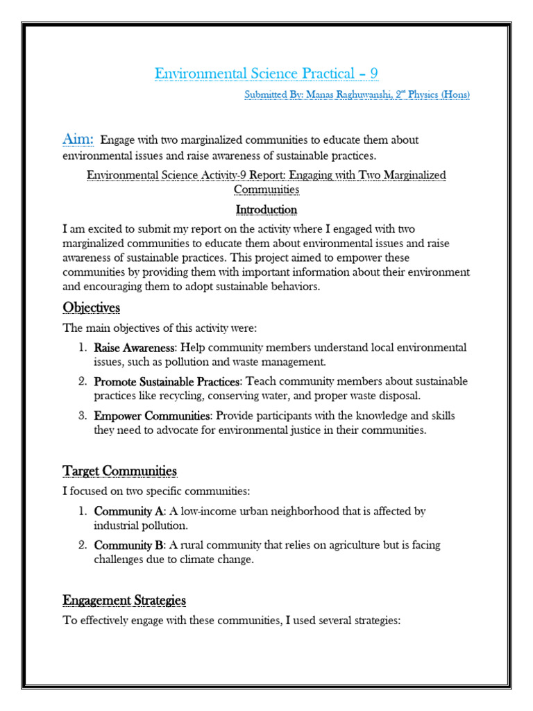 Environmental Science Activity-9 Report: Engaging with Two Marginalized