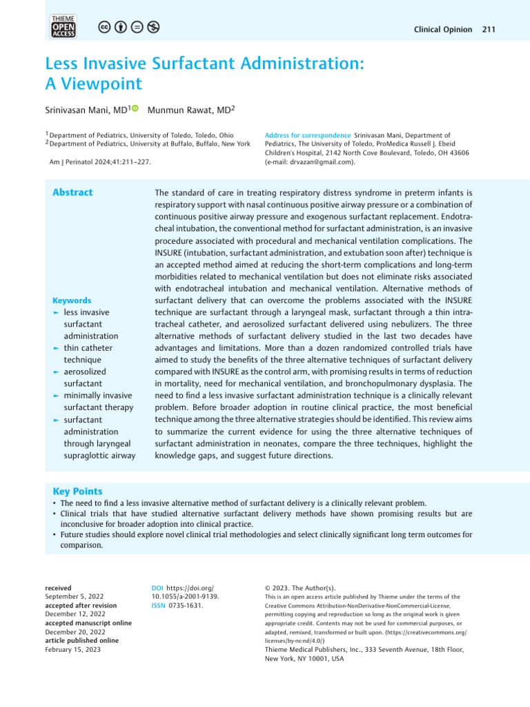Less Invasive Surfactant Administration Mani, Rawat 225