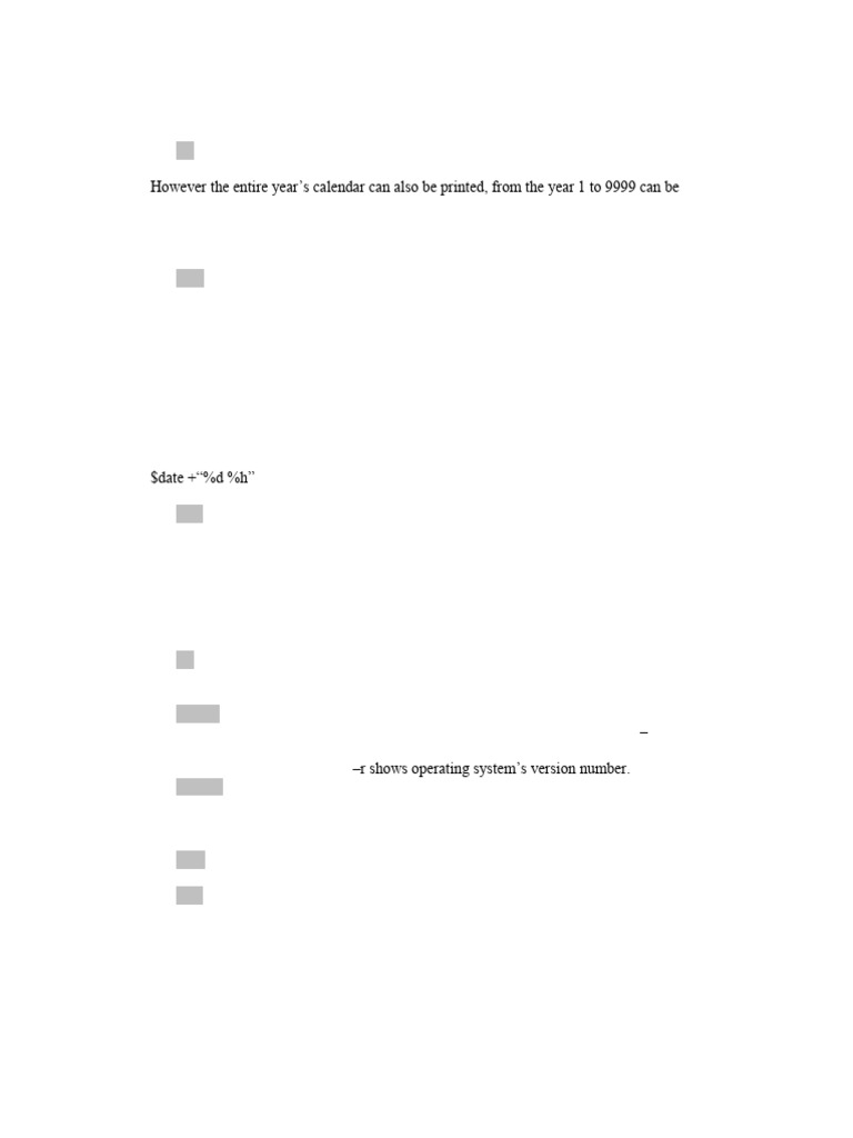 With cal command, calendar of a month can be printed.