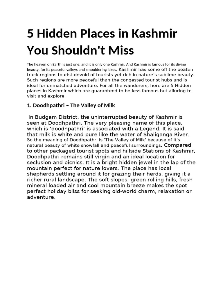 beauty, for its peaceful valleys and smouldering lakes. Kashmir has some off the beaten