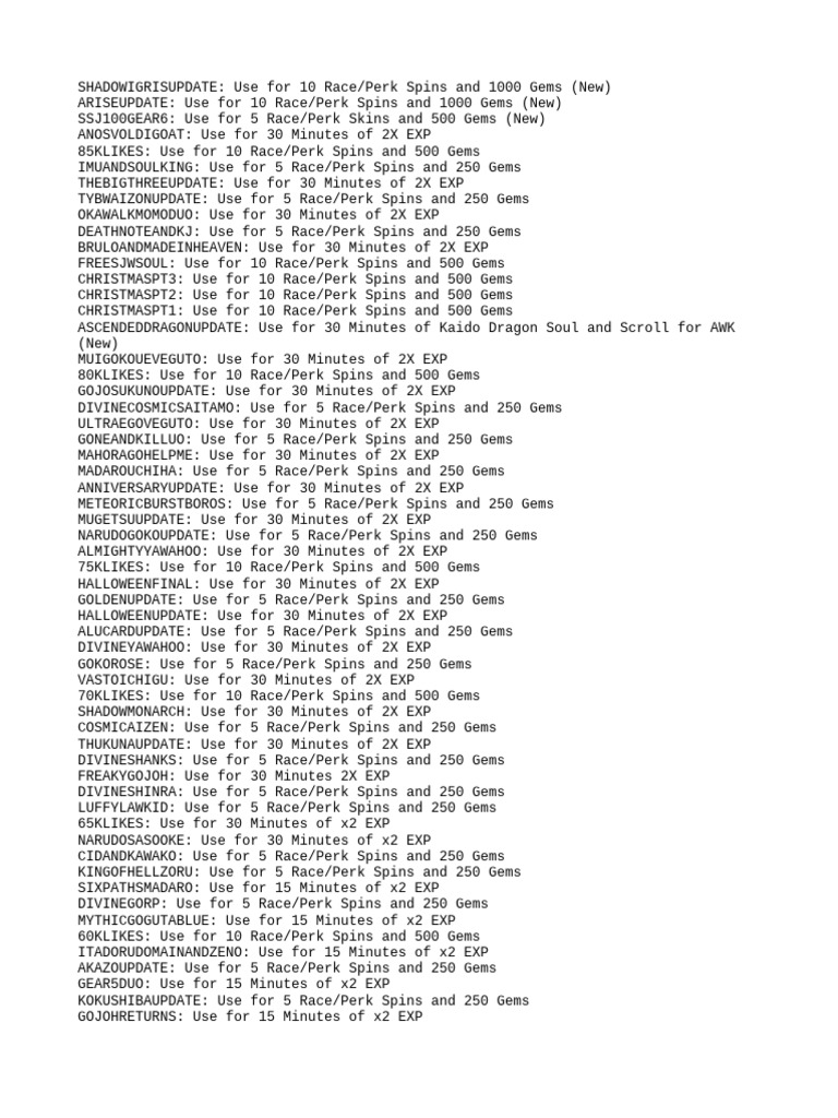 FREESJWSOUL: Use for 10 Race/Perk Spins and 500 Gems