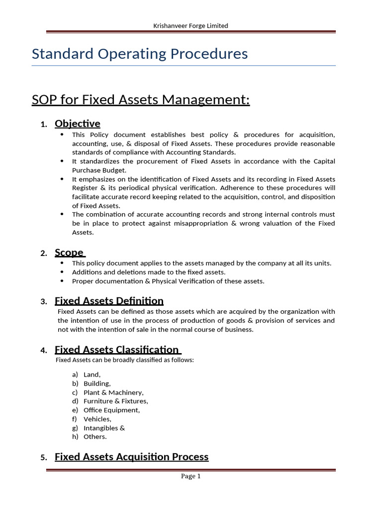 maintenance, physical verification, and major disposal in relation to fixed assets