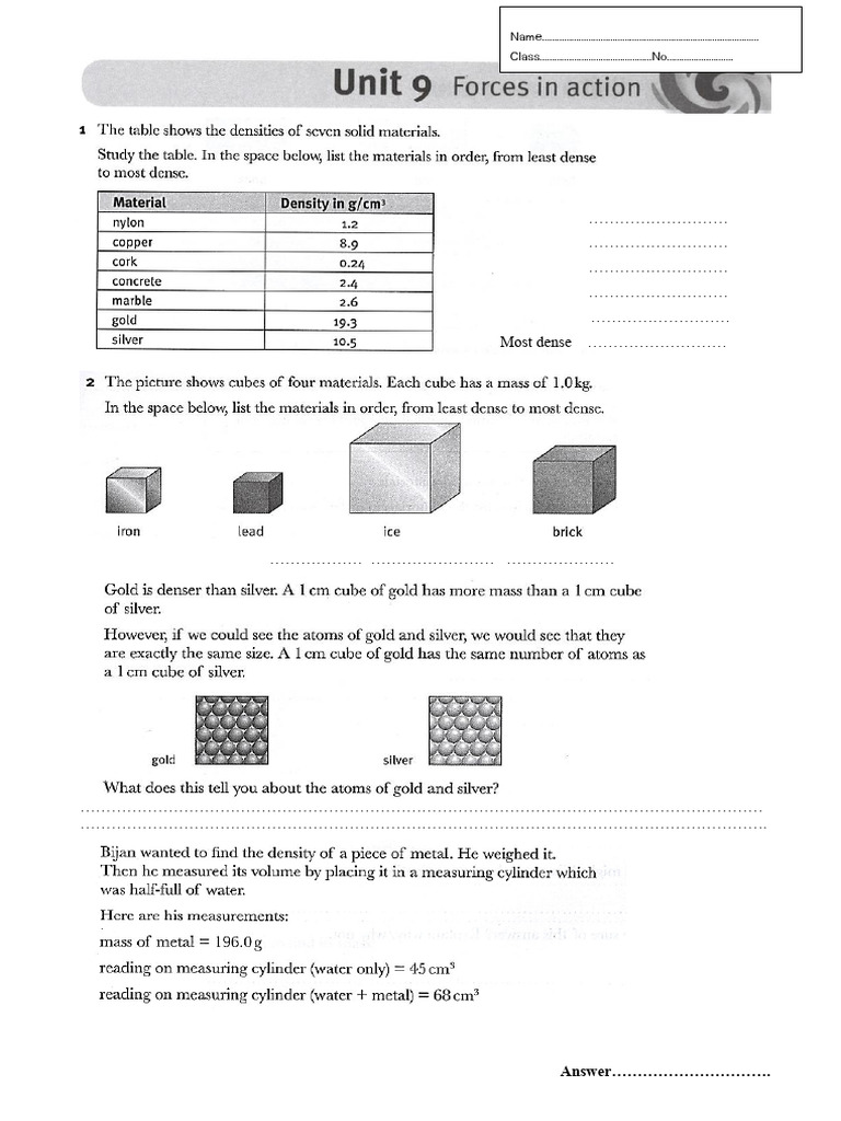 2. A steel cube has sides of length 20 cm. Calculate its mass. (Density of steel =7.7 g/ cm3.) Give your answer