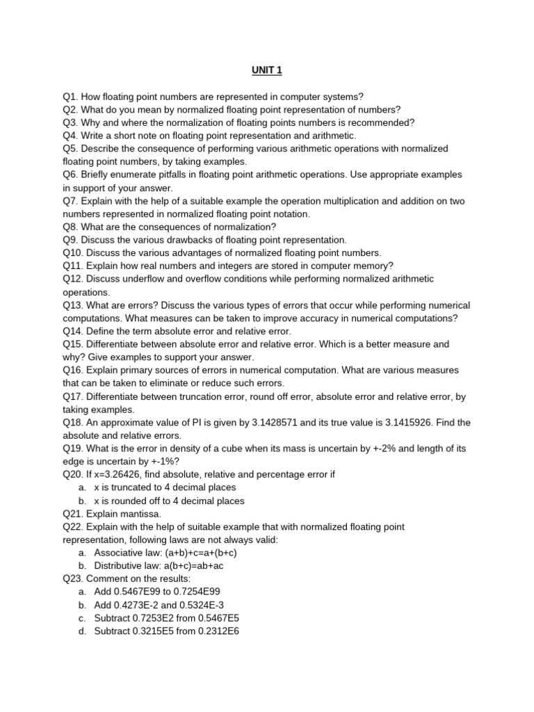 Q17. Differentiate between truncation error, round off error, absolute error and relative error, by