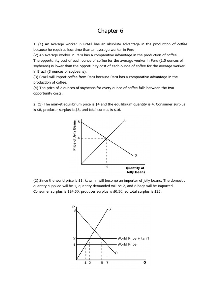 1. (1) An average worker in Brazil has an absolute advantage in the production of coffee