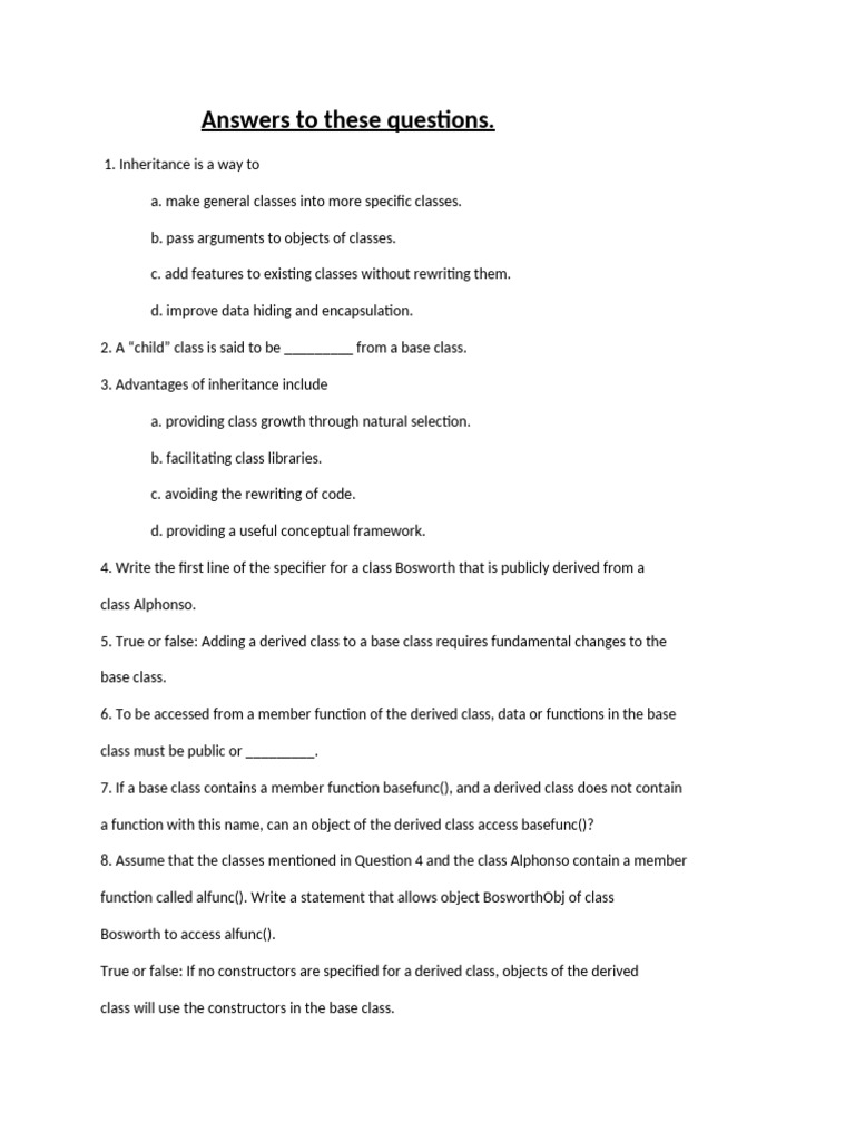 11. Write a declarator for a no-argument constructor of the derived class Bosworth of
