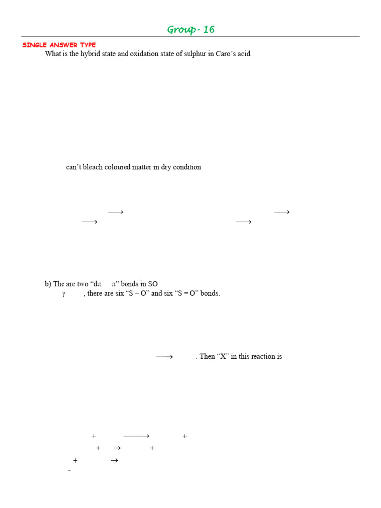 1. What is the hybrid state and oxidation state of sulphur in Caro’s acid