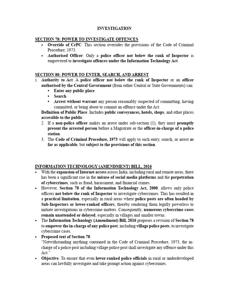 The Information Technology (Amendment) Bill, 2016 proposes a revision of Section 78