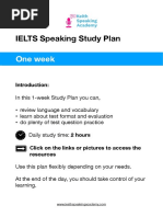 This study plan is designed for 4 study days per week with a focus on speaking skills.