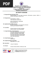 Profiling of learners’ Computer Planning of Programs and activities. ICT Coordinator PhP 250 Bond paper, ink, tape September Officers