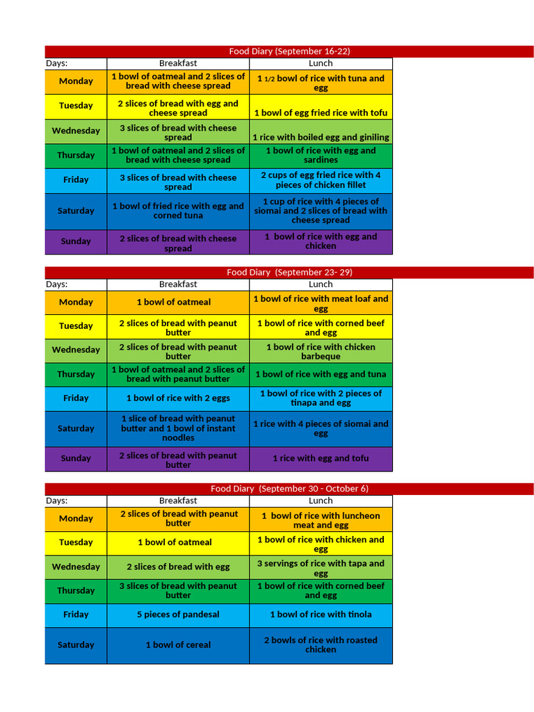 Food Diary (September 23- 29)