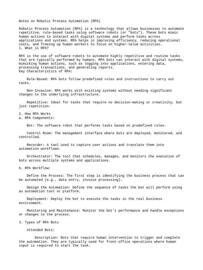 Notes on Robotic Process Automation (RPA)