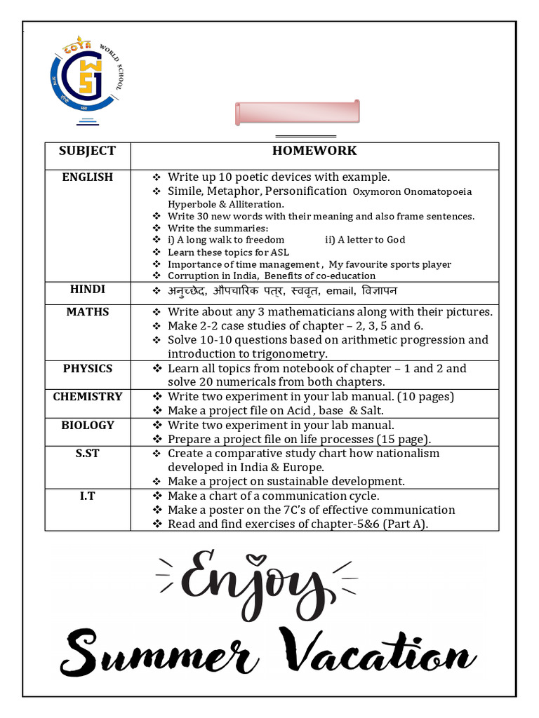 SUBJECT HOMEWORK