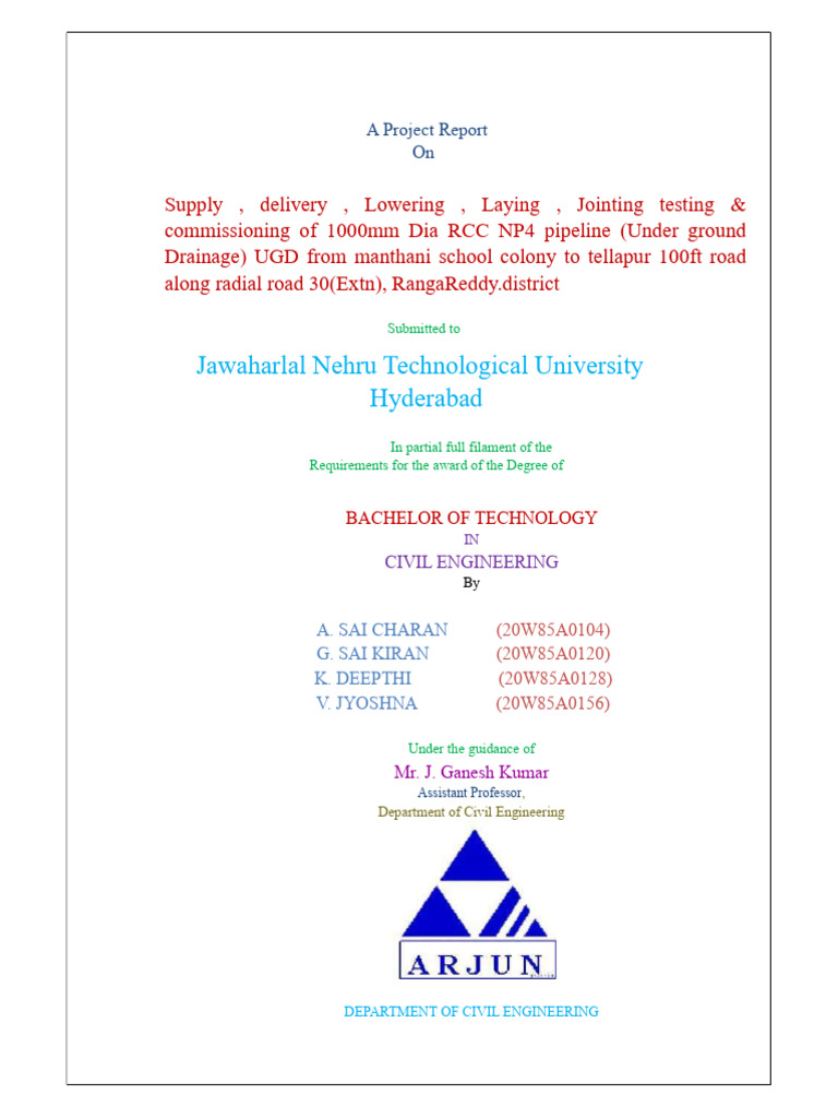 Technology with the specialization in CIVIL ENGINEERING Hyderabad, affiliated to JNT