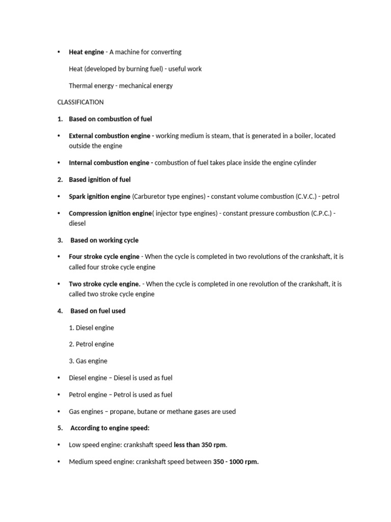 • Medium speed engine: crankshaft speed between 350 - 1000 rpm.