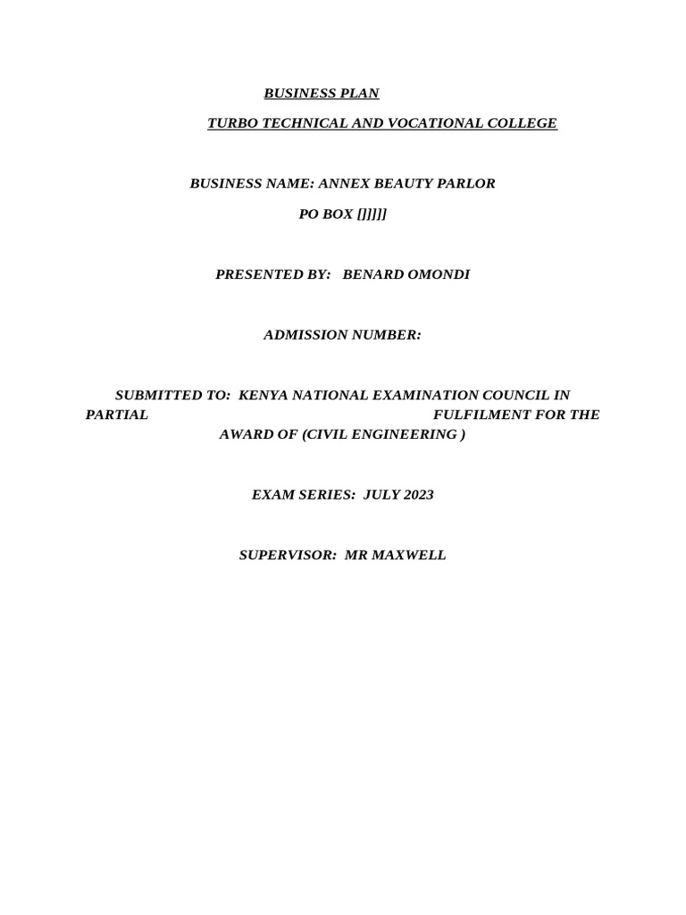 employees. More so the business is to be registered under Annex Beauty Parlor its address is