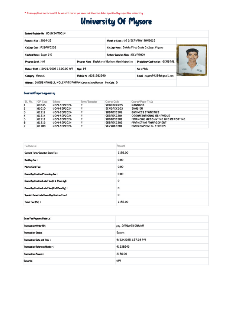 * Exam application form will be auto filled as per exam notification dates specified by respective university