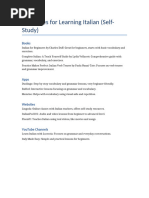 - YouTube Channels: Italiano Automatico, LearnAmo, Easy Italian