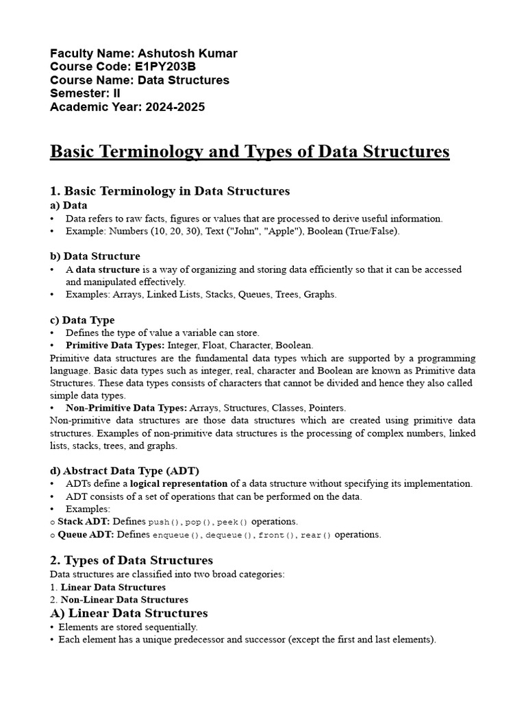 Basic Terminology and Types of Data Structures