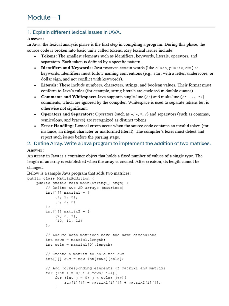 1. Explain different lexical issues in JAVA.