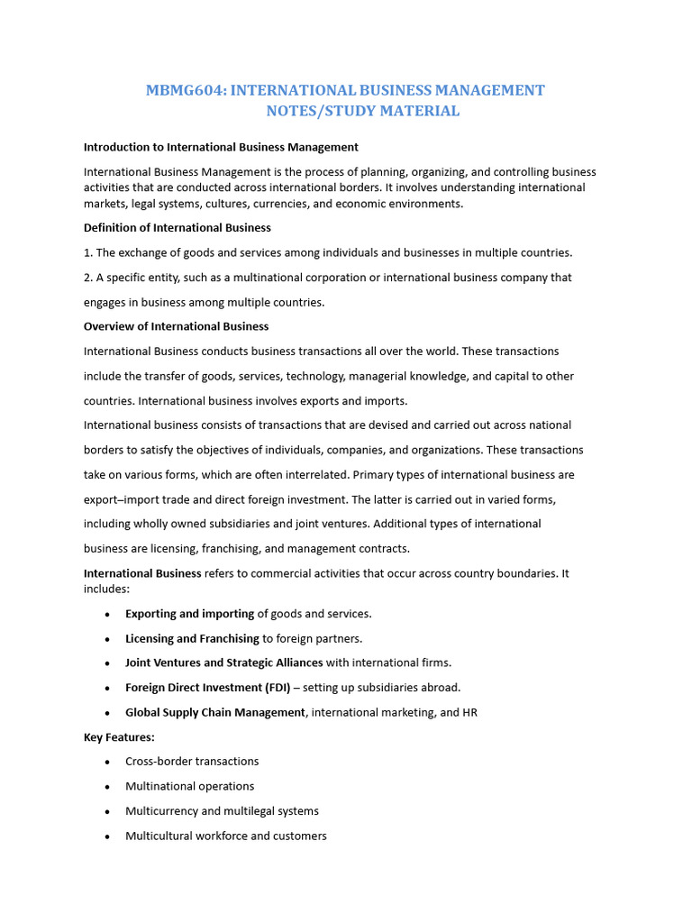 MBMG604: INTERNATIONAL BUSINESS MANAGEMENT
