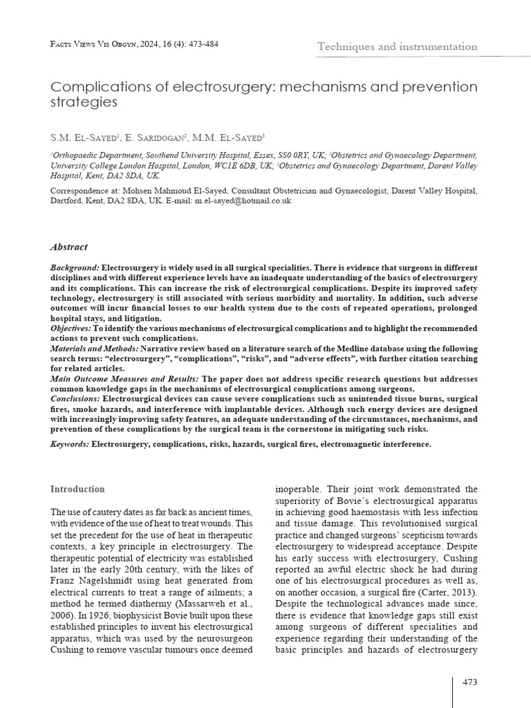 COMPLICATIONS OF ELECTROSURGERY – EL-SAYED et al. 483