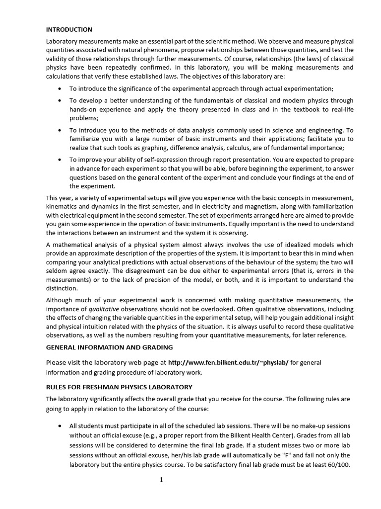 Please visit the laboratory web page at http://www.fen.bilkent.edu.tr/~physlab/ for general