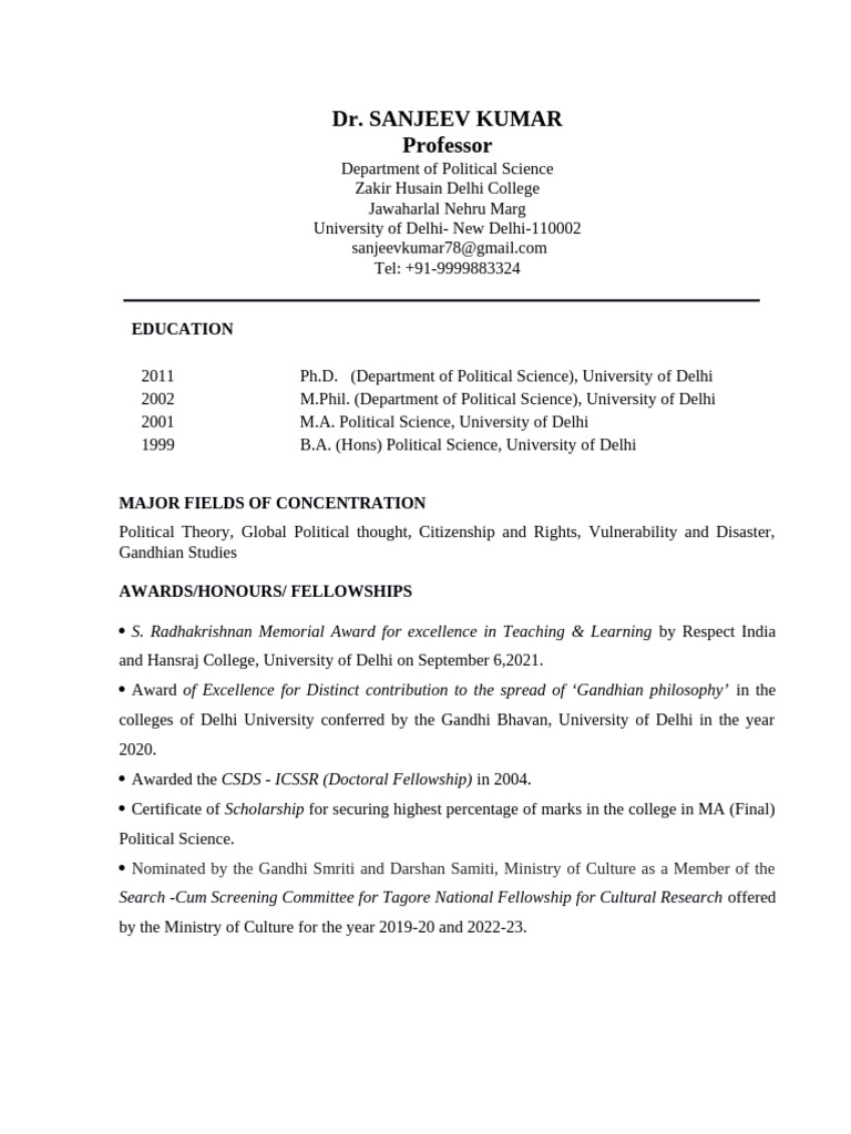 Dr. Sanjeev Kumar Professor: Education