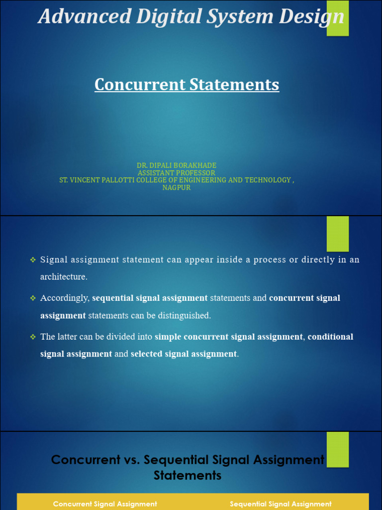 v Accordingly, sequential signal assignment statements and concurrent signal