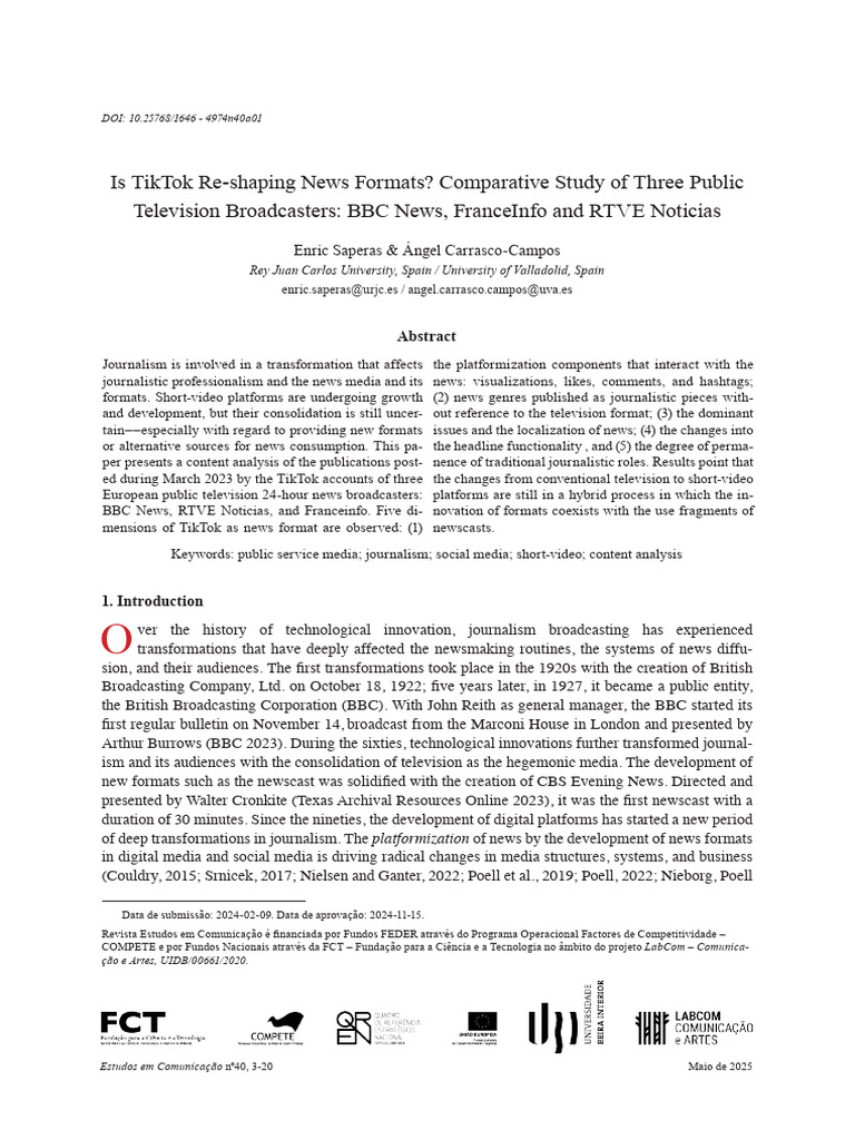 This paper focuses on TikTok as a platform for the dissemination of news in short-video format.