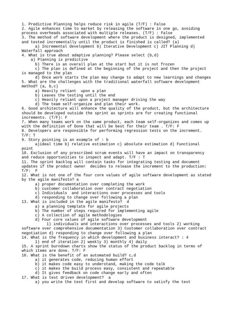 21. What is not true about agile software development? C