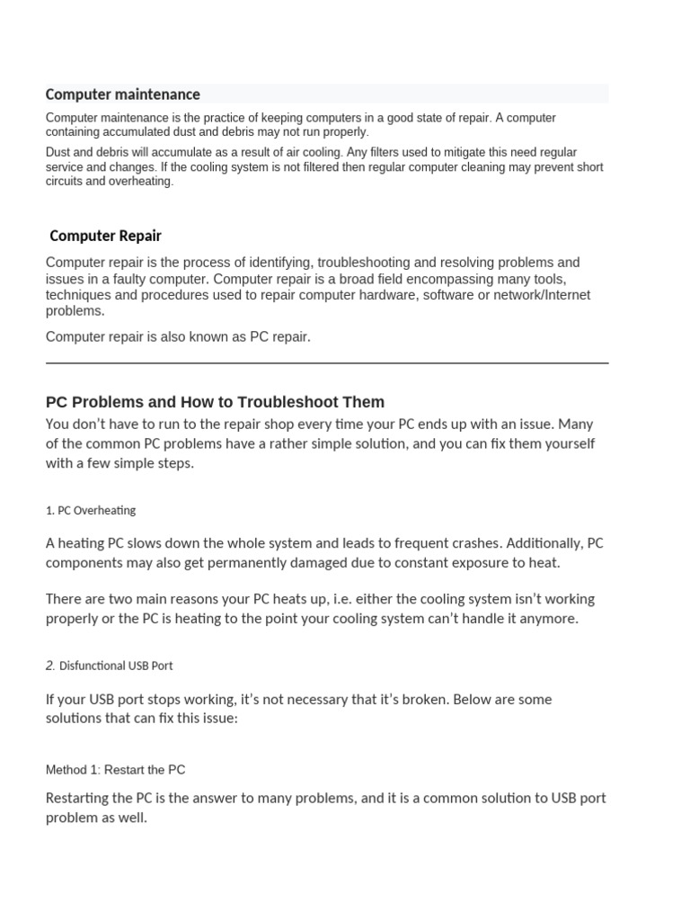 issues in a faulty computer. Computer repair is a broad field encompassing many tools,