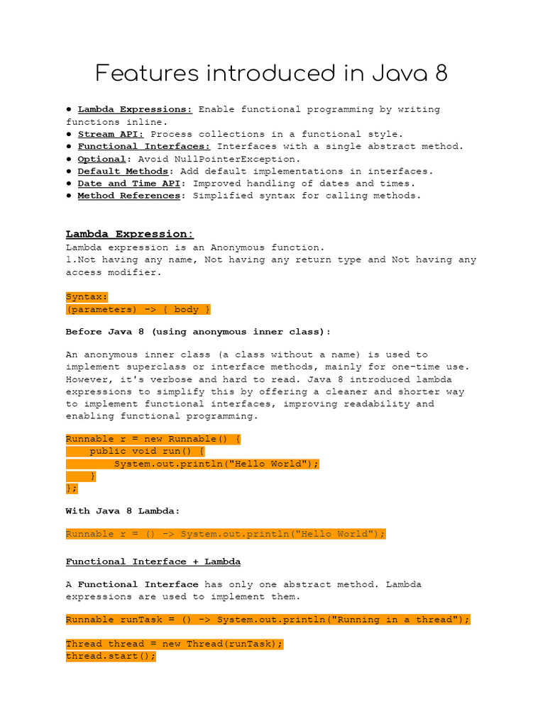 Features introduced in Java 8