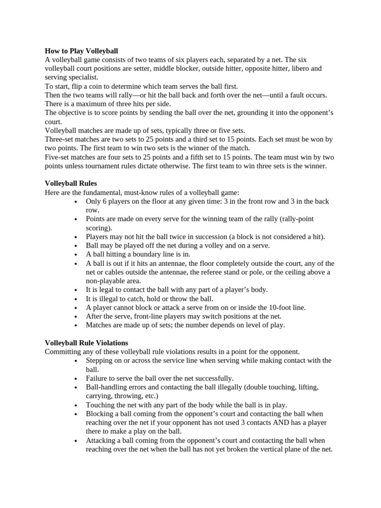 Volleyball Rule Violations