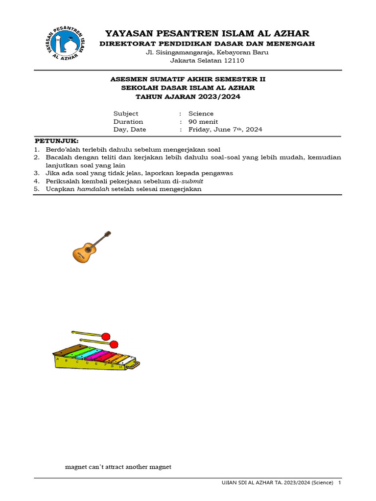 UJIAN SDI AL AZHAR TA. 2023/2024 (Science) | 2