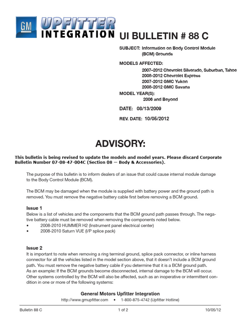 This bulletin is being revised to update the models and model years. Please discard Corporate