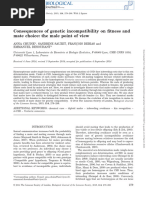 responses of pedigrees VI and VIII to inbreeding were not monotonic for this trait; these pedigrees produced the greatest number of ovules at an inbreeding level of 0.25 or 0.75, respectively (Fig. 4). The number of ovules produced decreased gradually as the plant matured. On average, malesterile flowers produced fewer ovules (10) than hermaphroditic flowers (12; P 0.0001). Even after accounting for inbreeding, a significant positive correlation between number of ovules and the amount of viable pollen produced was observed. Considering the three plants that were strictly male sterile, as inbreeding increased the average number of ovules per flower decreased (11.4, 11.2, and 10 ovules, for F 0, 0.25, and 0.5, respectively). DISCUSSION Inbreeding reduces both male and female fertility in this population of Nemophila menziesii. These effects, which are expressed quantitatively as increases in the incidence of sterile anthers and reductions in the number of ovules per flower, vary with genetic background, suggesting that a polygenic system contributes to male sterility, as well as to fertility via ovule production. Of the 1156 plants studied, few were completely male sterile, but partial male sterility was relatively common (14% of plants in the larger, initial sample of the preliminary experiment). Schultz (2002), noting growing evidence of partial male sterility, has extended models of evolution of gynodioecy to allow for intermediate fertility of males. Whereas the preliminary experiment unambiguously demonstrated that inbreeding increased the number of male-sterile flowers in most of our pedigrees (Fig. 2), the trends with inbreeding were less clear and less consistent among pedigrees in the main experiment, designed for intensive assessment of