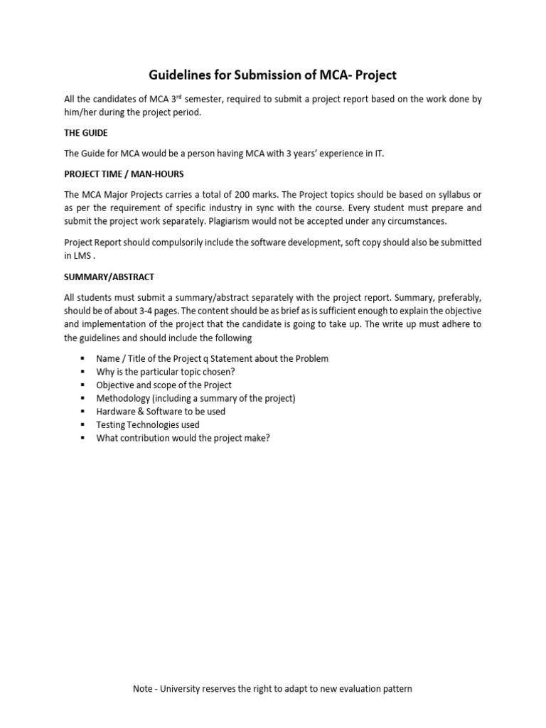 Guidelines for Submission of MCA- Project