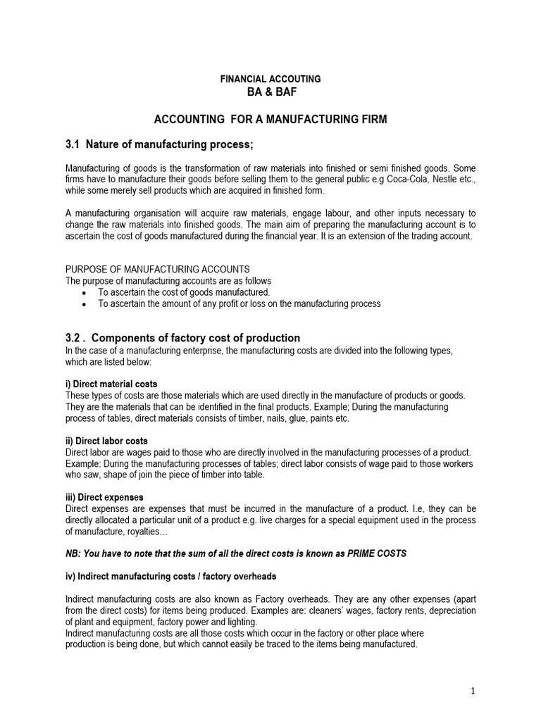 3.3.1 Manufacturing accounts