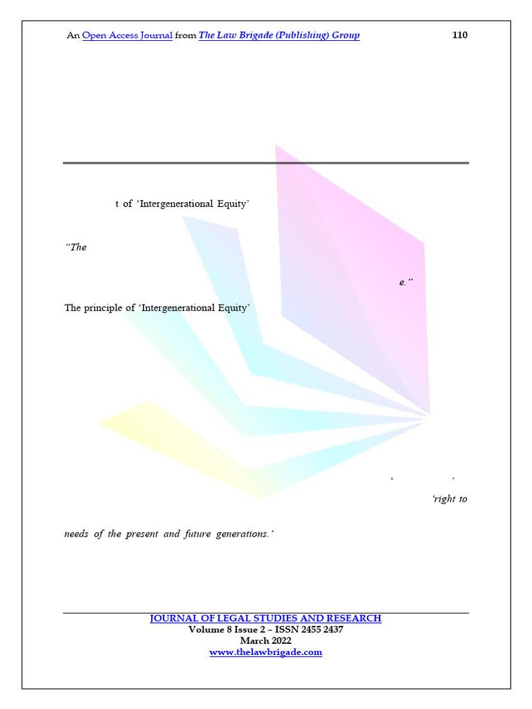 The principle of ‘Intergenerational Equity’ stipulates that the present generation should pass