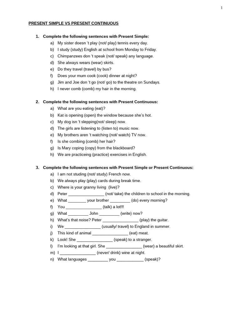 3. Complete the following sentences with Present Simple or Present Continuous: