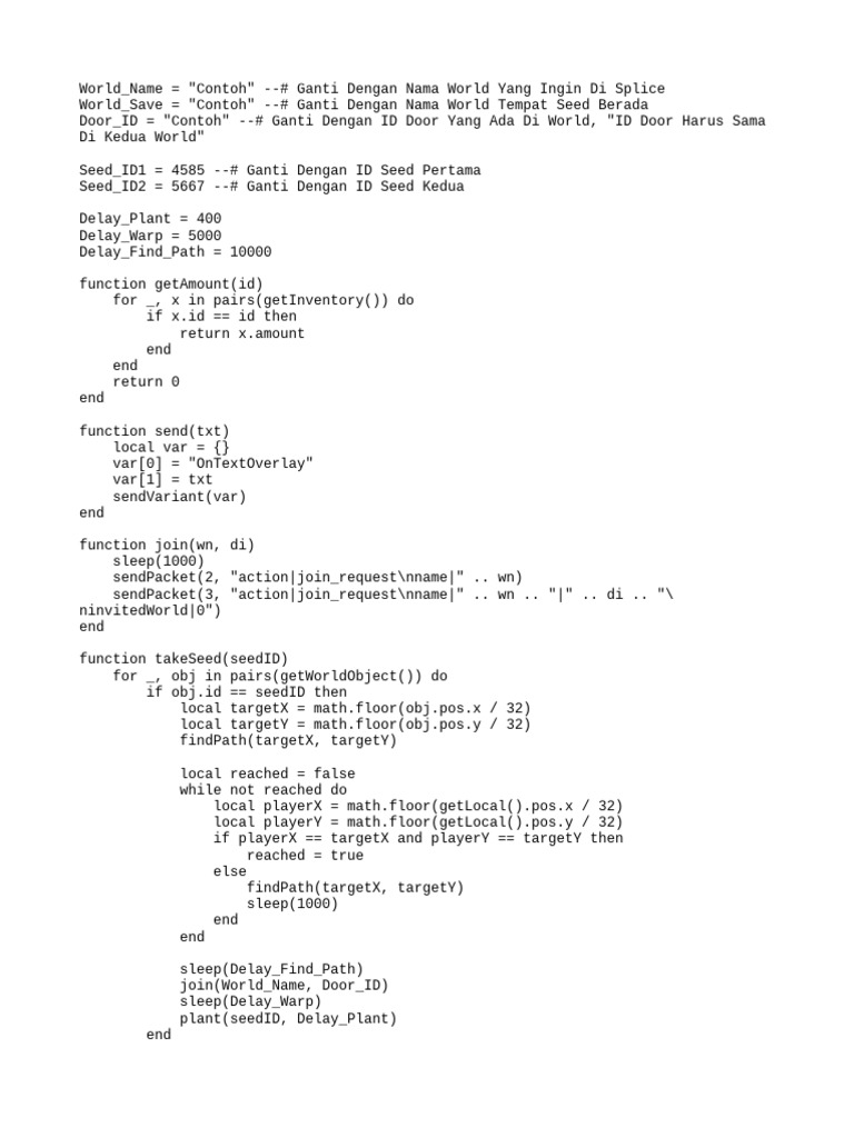 World_Save = "Contoh" --# Ganti Dengan Nama World Tempat Seed Berada