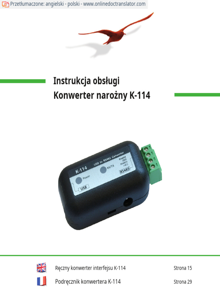 Włączenie 8 Der Schnittstellenkonverter K-114 bietet Ihnen…