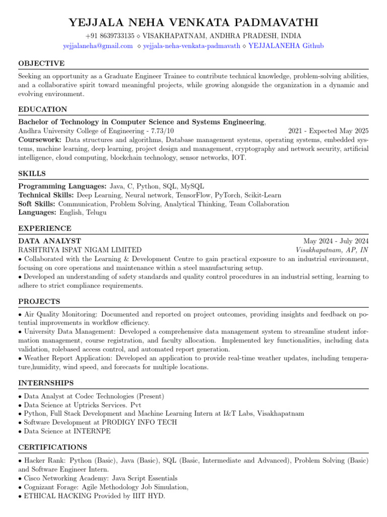 yejjalaneha@gmail.com ⋄ yejjala-neha-venkata-padmavath ⋄ YEJJALANEHA Github