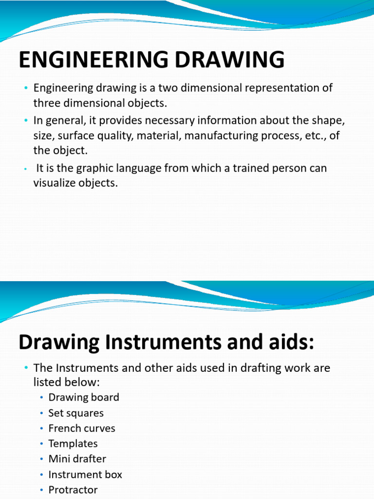 • Engineering drawing is a two dimensional representation of
