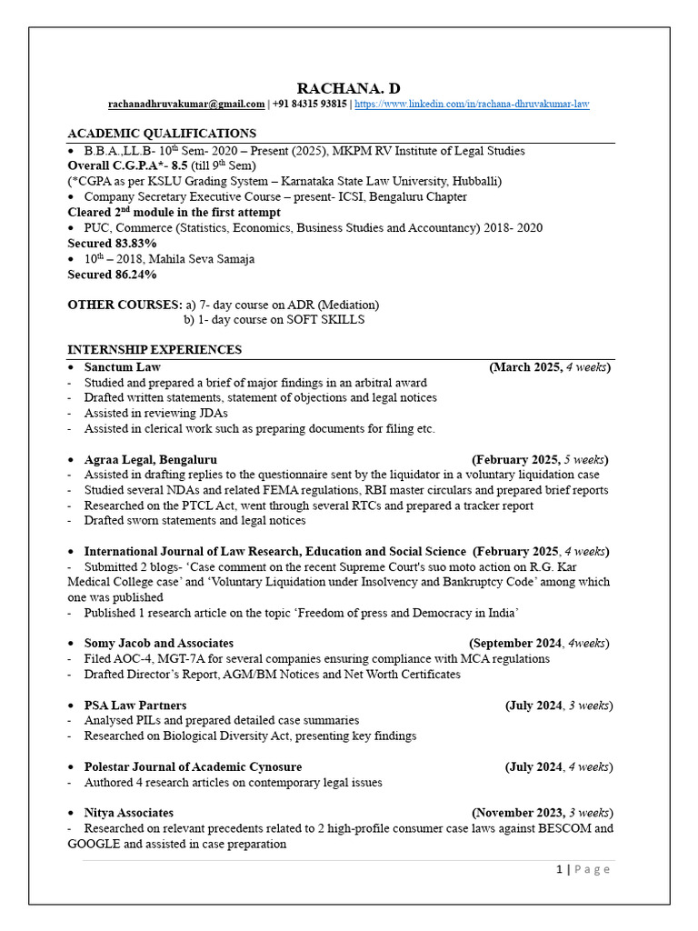 rachanadhruvakumar@gmail.com | +91 84315 93815 | https://www.linkedin.com/in/rachana-dhruvakumar-law