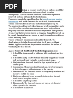 FORMWORKS or SHUTTERING – Temporary structure used as a mold in which fresh concrete are