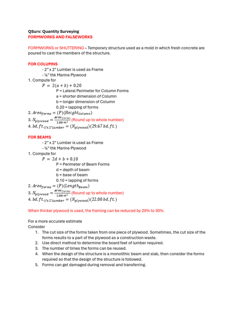 MATERIALS TO CONSIDER FOR FORMWORKS