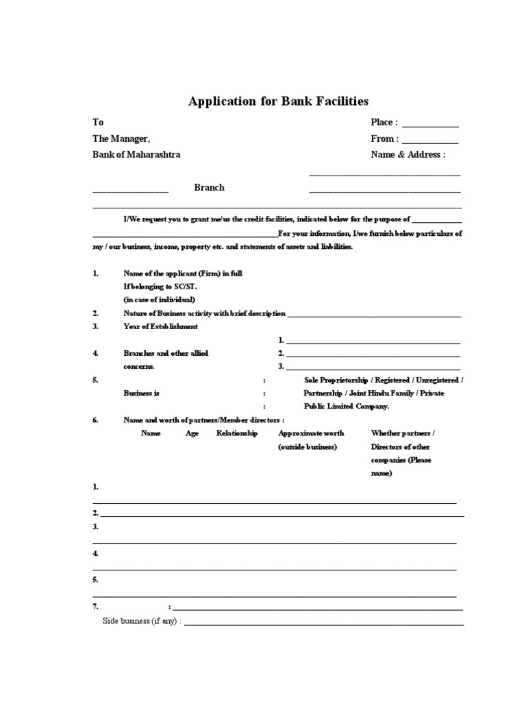 I/We request you to grant me/us the credit facilities, indicated below for the purpose of _____________